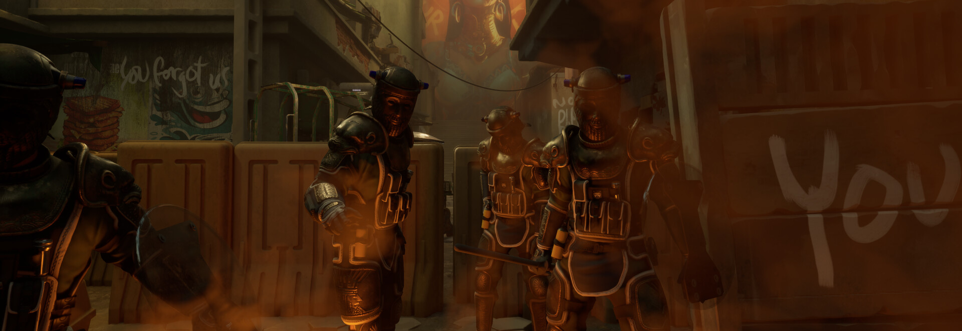 In the slums of Kug Nansha, they are seen as the nightstick of the Fathers, keeping the underclass from knocking over the social ladder of the forever city.